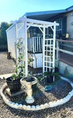 Dura-Trel Elmwood Arbor 57" x 84" PVC Outdoor Garden Arch Lattice Trellis, White