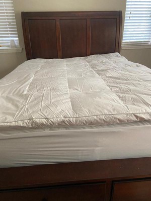 This feather bed really made my too-hard mattress much more comfortable! It adds extra cushion without being too warm. I ditched a memory foam topper that was even worse than the mattress because it left me with sore legs and shoulders. I didn’t sleep well because I woke up in pain. This featherbed solved all of those problems and I can finally get a good night’s sleep again.