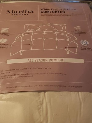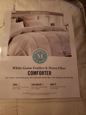 [This review was collected as part of a promotion.] I absolutely love my Martha Stewart White Goose Feather and Down Fiber Comforter. It has a natural moisture wicking that makes this an all season cozy Comfort a plus; with this Comforter that's 100% cotton.