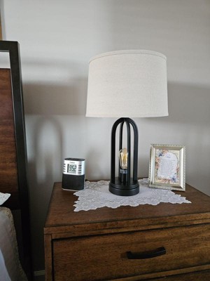 360 Lighting Marcel Industrial Table Lamps 24 1/4" High Set of 2 Black with LED Nightlight USB Port Natural Shade for Bedroom Living Room House Desk