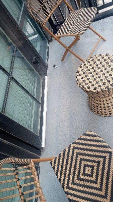 Out with the old and in with the new! I ditched a basement (old space) for a balcony (new space). I purchased a pair of these Aster accent patio chairs for my new luxury abode outdoors. The perfect balcony furniture! They are strong, sturdy, stable and stylish all-weather proof chairs that perfectly complement an extension of my living room outdoors! I love the vintage vibes in this set of woven chairs! I didn't buy the Aster accent folding table because I didn't like the same chair seat pattern and print on it, I thought it was too matchy-matchy lol. And later found a beautiful Axton woven black and natural all-weather outdoor patio sidetable in a lovely hourglass shape that perfectly complements the Aster chairs set. A wonderful buy from World Market! I love the fact that I arranged and married the three pieces of furniture together. They all go well together without competing with each other. Happy with my purchase!
