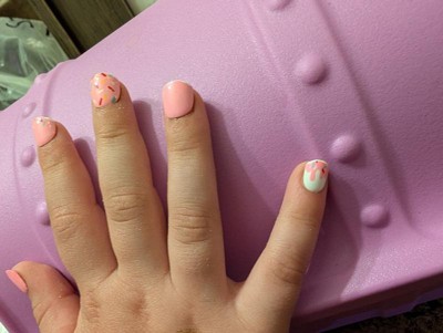 [This review was collected as part of a promotion.] My daughter was so excited to see these sitting on the table. She thought the ice cream design was so cool and I do have to say it is pretty cute. Shes only four years old so a couple fingers were almost too small no matter which nail we picked. But that is to be expected. I do wish the sticky gel was a bit stronger because they were falling off within 30 seconds of putting them on but to be fair I also didnt prep her nails like I would have mine. She was eating dry corn flakes and they were popping off. So, I will be prepping her nails to see if that helps. They are cute and perfect for play. She was excited and it was adorable. I think these would be a great way to have a "girls day".