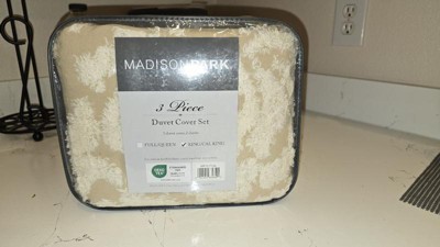 King/California King Eugenia Cotton Chenille Damask Duvet Cover Set Taupe: Madison Park, OEKO-TEX Certified, No Fill