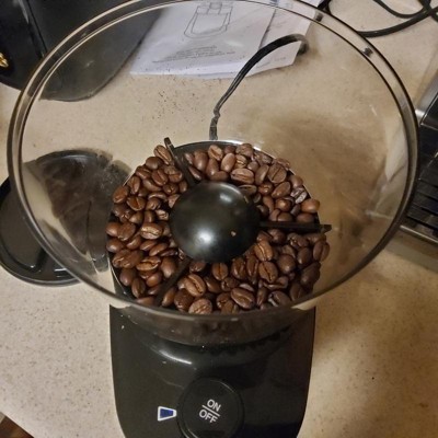 [This review was collected as part of a promotion.] The number one thing I like about this coffee grinder is that it has a large container at the top. It is very handy because you don't have to be filling your grinder every day to make your coffee. You can grind enough for a full pot or just a few cups of coffee which is nice because you have fresh ground coffee all of the time. Another feature that is nice is that you can control the grind from fine to coarse, depending on how you like your coffee. I like how it looks and it doesn't take up a lot of space. I recommend this coffee grinder.