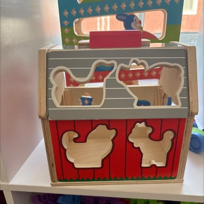 Melissa & Doug Take-Along Wooden Sorting Barn Learning Toy with Flip-Up Roof, Handle, Farm Play Pieces