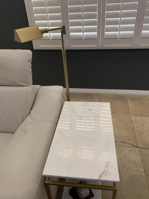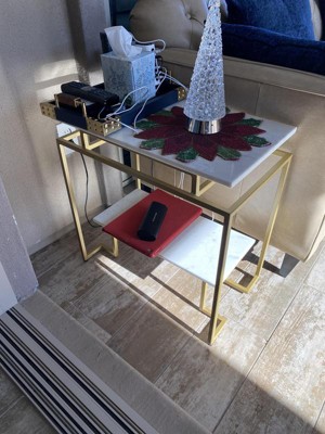 Coast to Coast Accents Modern Burnished Gold Rectangular Accent Table 24" x 14" White Marble Tabletop with Shelf for Living Room