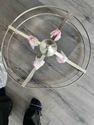 This was my first purchase ? pictures show everything . How can some one send me something like this .. look at the pic of the product and look at what they send me .. a completely bend rusty steel like thing which looks like was found in trash and packed ? I hired a guy to install it as I have a high ceiling and I had to pay his time too ,, as I didn't wanna open the box till he arrives ? the pictures looks like brass and real you can see what it is