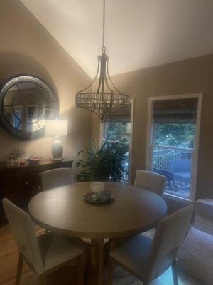 Recently downsized. Didn't need a formal dining room but needed a room for the piano area. This new chandler did the trick for a nice ambience. If you Google piano room chandelier, that is NOT the one you want. This is it. More subtle. Really enjoy.