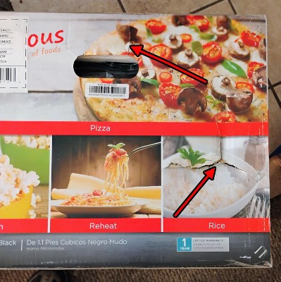 Hello, Ysen. Thanks for sharing your review of the BLACK+DECKER 1.1 cu ft 1000W Microwave Oven. We apologize for the condition of the unit you received. To better assess the damages caused, please contact us at Digitalsupport@midea.com. Have a great day!