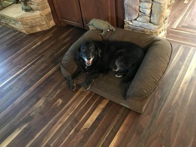 So, Echo's (my mini Aussie pup) has a choice to nap in my recliner or his new bed...he chooses his bed. I can tell you it's the best bed I've ever bought for one of our dogs. Great quality, huge side pillows...foam cushion in the bed part and I think it's all made in the USA, which is a big deal for me. Liked that I could add his name, even though it doesn't keep his dog brothers and sisters out of his bed. I guess they'll all be wanting upgrades...sigh. :)