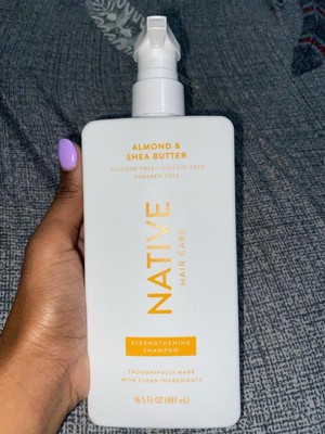 [This review was collected as part of a promotion.] I tried the native almond & shea butter strengthening shampoo and I like how it cleans my hair without leaving it dry. The texture feels nice and it rinses easily without heavy residue.