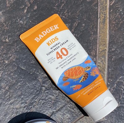 Badger Mineral Kids Sunscreen Cream - SPF 40 - 2.9 fl.oz: Whole Body, Hypoallergenic, Paraben-Free, Vanilla Tangerine Scent