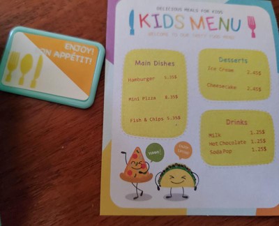 - Includes: food tray, spork, cafeteria card, fruit salad, juice cup, mac & cheese, veggies, cinnamon bun, and lunch menu