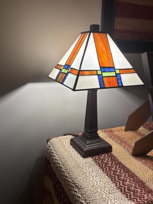 Robert Louis Tiffany Mission Accent Table Lamp 14 1/4" High LED Art Deco Stained Glass Shade for Bedroom Bedside Nightstand Office