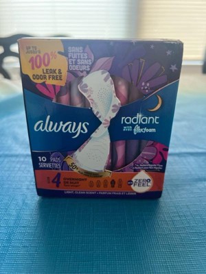 [This review was collected as part of a promotion.] I've never really wore pads until an incident with a tampon last month that almost killed me. I was excited to see always radiant ads were up for grabs so I decided to try them. Did not have any leaks overnight was so thin and comfortable couldn't feel it didn't make a bunch of noise like some pads while I was trying to sleep. Have already bought the smaller size for during the day. My daughter tried them too and said they were great couldn't see when she had on leggings