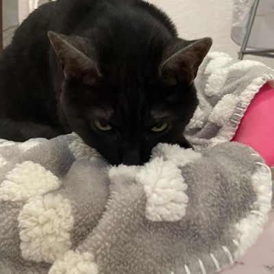 Bought several of these “blankies” (in different colors/patterns) from Target, for our cats to snuggle on. I put them on the bed and they instinctively know that that is “their spot”. Nice! Then, when we travel, I take 2-3 of these blankies and put them on the chair or bed and they seem much calmer and run to lay on them. EASY to throw in the wash and they continue to feel and look great!