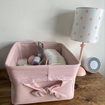 Decorative Storage Bin with Side Tie Medium - Cloud Island™ Pink: Metal, Linen, Rectangular