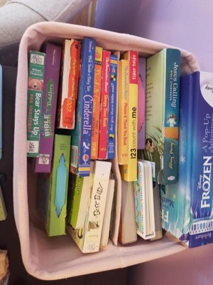This is such a pretty Pink Decorative Storage Bin by Cloud Island. I love the side ties where I can carry this bin from room to room. My daughter has her books stored in this storage bin and also a few toys. It is well made and the fabric is durable. Such a lovely storage bin that would look great in any room especially a little girl's room.
