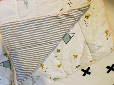 Love this blanket! It is soft and lightweight. As others mentioned, it is sort of a “comforter” style as it is kind of fluffy. This is not a blanket to use for swaddling, etc. The design is very cute. Would definitely recommend.