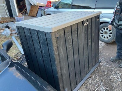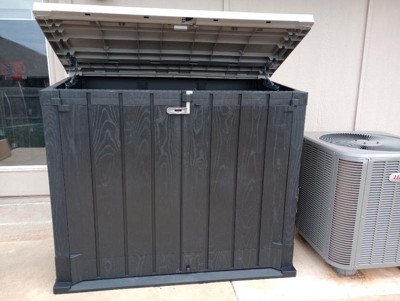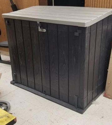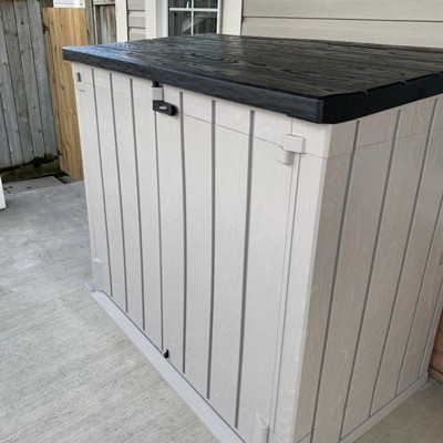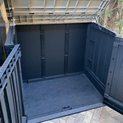 This is a very cheap plastic bin. As I unboxed this huge box, the last item was broken. the plastic cracks very easily as you put it together and the hinges are tough to close when shut it disconnected the back part of the top and broke the plastic. I would return it if I didn't spend 3 hours trying to put this together. It is awful!!!!