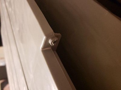 Hinge is attached with a small plastic nub. It broke before or during assembly. Can’t get just a replacement cover. Option to ship back but it snaps together and can’t be disassembled without major damage. Both Target and VM Expresses have offered free shipping back but will not refund the money until they receive it.