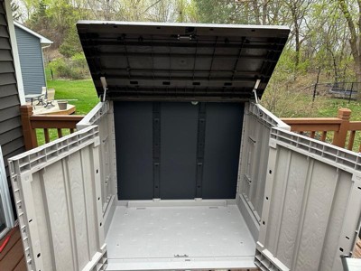 [This review was collected as part of a promotion.] I love the Toomax Stora Way All Weather Outdoor 5' x 3' Storage Shed. Super sturdy storage and strong shed. Easy to open for quick access via hinge top or for full access open the top and front via the 2 hinge front doors. Does have a locking latch to keep pests out and you can add a pad lock for extra security. Very modern and unassuming design will blend in well with most spaces. Fully weather protection for all your tools. Took about 30 minutes to assemble with moderate skill. I would highly recommend it to anyone. The product description was just as described and would buy it again.