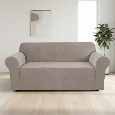 This review is for the loveseat cover. Buyer Beware: Item does not fit a love seat up to 73” arm to arm as stated on the package. I already own this cover in the sofa size and decided I wanted one for the loveseat as well. The loveseat cover arrived and I found it is far too short length wise to cover my loveseat, which only measures 71” arm to arm. I have also included a photo of my full size sofa (84” long) with the previously purchased sofa cover from the same brand that fits properly, for comparison. Other than this issue with the loveseat cover being too short, the sofa size one is bomb and keeps the cat hair off the couch- washes and dries well.