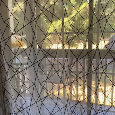 [This review was collected as part of a promotion.] I got these sheer curtains to create an as needed separation from my “cloffice” (closet office) off our playroom. I didn’t want or need anything too heavy, but wanted something fun and trendy to tie the space together and these were perfect. The sheer fabric creates a nice light “implied” separation, while the geometric stitching keeps it fun. The quality also seems very nice. Very happy with this product.