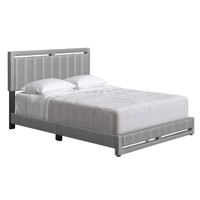 Full Malik Mid-Century Vertical Channel Linen Upholstered Platform Bed Gray - Eco Dream
