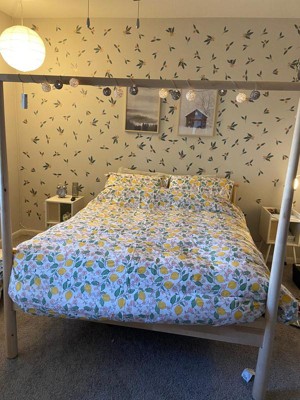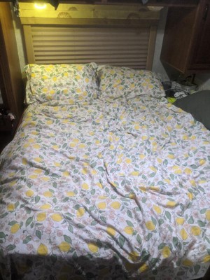 [This review was collected as part of a promotion.] After working from home for the past 13 weeks I was looking for ways to spruce up my home and this Brooklyn Loom Verbena lemon print duvet set gets the job done. I spotted this lemon duvet pattern and knew I had to have it. I have a red down comforter that I was unhappy with as it is shedding feathers and I thought this duvet would be the perfect choice. I am so happy with this duvet cover and pillow cases. This beautiful lemon print really opens up my whole bedroom and brightens my mood. This set is the perfect way to change things up in a simple and affordable way. The color is light and delicate and covers up any color comforter. The pillow cases were the perfect size for my pillows and I was happy with the 1-inch border. The feel of the fabric is smooth and comfortable. I have sensitive skin but the fabric is not irritating in any way. I can tell the quality of this product is very luxurious. I would definitely recommend this product and I look forward to getting some new patterns as the season change.