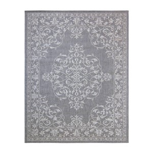 This rug is stunning! Has that french old world look to it. I ordered a 5x7 gray & cream and it is beautiful - so much so it went straight under my small dining table. (Now I have to order another one for my deck)!!! Came rolled in saran wrap and even though I have only had it in the house an hour or two the creases are slowly flattening. This is a beautiful rug with nice edges. Target I love you.