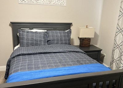 Loved the quality of this bedding, but the color is nothing like the picture online. The color online looks like a brighter blue, but the actual color is a dark navy almost dark gray color. Maybe if you have a lot of natural sunlight coming in, the color will look more blue. I loved the design, however I really needed it to be a different shade of blue since my kid is so picky.
