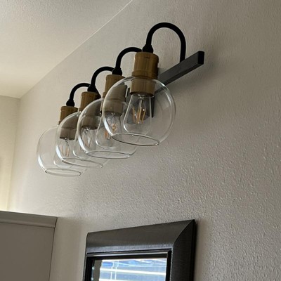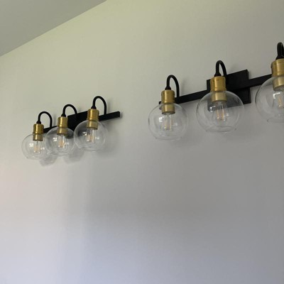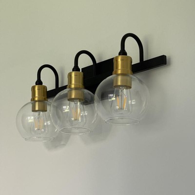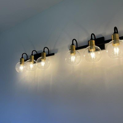 5.88" 1-Light Marais Iron/Glass Rustic Vintage LED Vanity Light Black/Gold - JONATHAN Y: Bathroom Wall Sconce, Edison Bulb