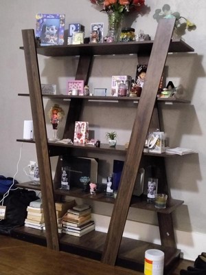 61" 5 Tier Michio Wood Geometric Display Shelf Walnut - Baxton Studio: Sleek, Spacious Storage for Home Office