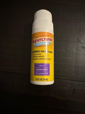 The aspercreme it works wanders helps with my discomfort in my back no irritation no stinging you don’t need to put a lot only enough to cover the area in discomfort I love the smell of lavender it not to strong for other people around you can to smell it