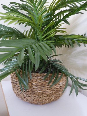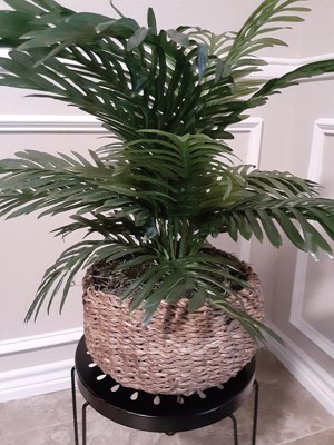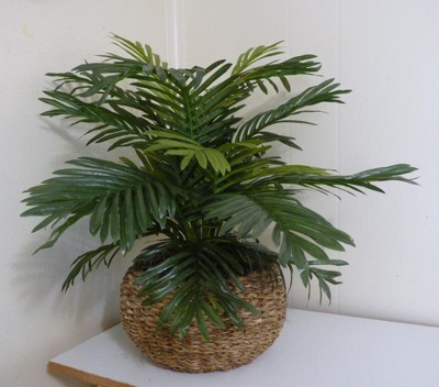 14" x 15" Artificial Palm Plant in Low Basket - LCG Florals: Indoor Polyester Greenery, Round Wicker Basket