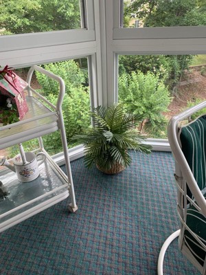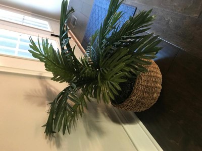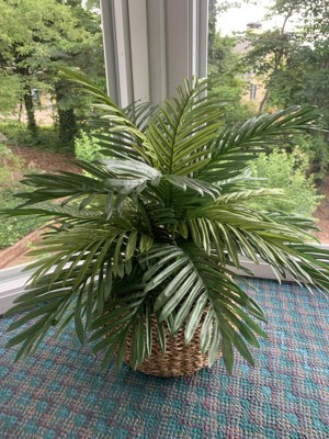 Although this artificial palm plant is not the most realistic one I’ve ever seen up close, it can look quite real from a bit of a distance. The different shades of green in the fronds as well as the fullness of the plant make it more believable. The brown wicker basket and moss filling also add to its authenticity. It has found a great home on an enclosed back porch with big windows looking out over other real green plants! :)