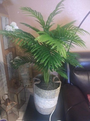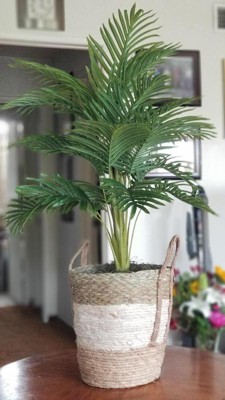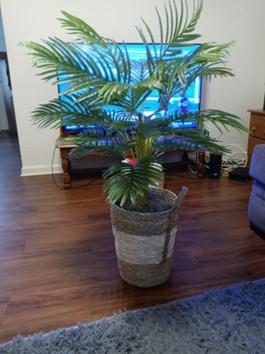 I love this palm plant. It looks so realistic, even my husband thought that it was a real plant. It is pretty big in size 42 inches tall it comes with a wicker basket, and it can be used inside or even outside. I love artificial flowers and this palm plant goes very well in my living room and makes room to look cozier. This plant is very lightweight and very easy to move from one place to another. I am even thinking to get one more of the same plant for the entry, as those artificial plants look beautiful and easy to maintain.