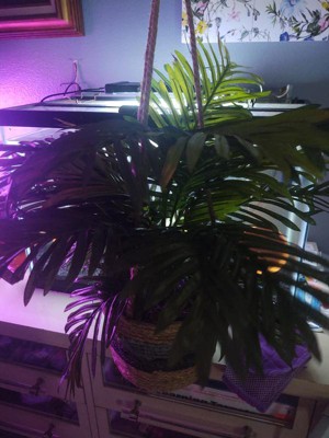 I am very pleased with the looks of my artificial palm plant. I can hang it from the included jute hanger or set it on a shelf or side table to brighten up a dark corner of my home. I don't have to worry about watering it, perfect when I leave for an extended amount of time. I live with three cats who always like to nibble on real plants, no worry about this plant. The palm looks like a high quality product, from a few feet away it looks real. It is set in a pretty, decorative basket that looks to be handmade.