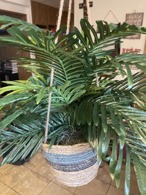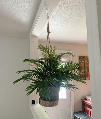 30" x 16" Artificial Phoenix Palm Plant in Hanging Basket - LCG Florals Very easy to use. Just place where you would like to display it, adjust the stems and it’s ready to show. I like I don’t have to water it and it looks nice in my window. It can be hung also or put on a shelf or table