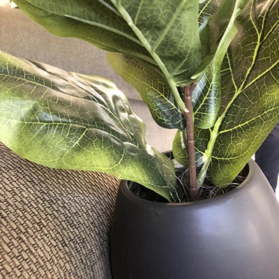 LCG Florals 15" x 12" Artificial Fig Plant in Ceramic Vase Black: Faux Ficus, Indoor Polyester Decor
