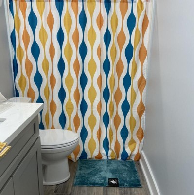 Mid-Century Geo Shower Curtain Turquoise/Orange - Lush Décor