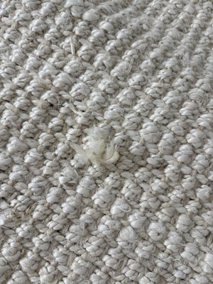 [This review was collected as part of a promotion.] Unrolled this rug to find so many spots where the rug had unraveled. The rug seemed to be loomed with pieces that seemed almost wood-like and I would never want anyone to walk barefoot on the rug as it would definitely hurt when walked on! I’m so disappointed with the rug.