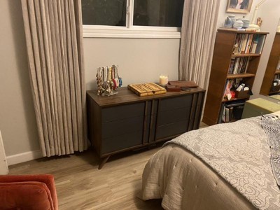 I really like the style. Wish I read reviews before purchasing. Using in a spare bedroom so it might work. Drawers have small space item is very short. Might be cute for a toddlers room. Won’t recommend for purchase.