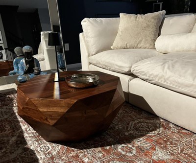 Diamond Shape Acacia Wood Coffee Table with Smooth Top Dark Brown - The Urban Port: Octagonal, No Assembly, Sturdy Base