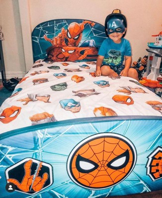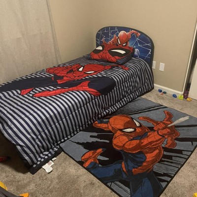 Twin Spider-Man Upholstered Kids' Bed - Delta Children: Marvel Blue Toddler Platform Frame, Wood, JPMA Certified