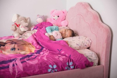 Fabulous velvety pink bed! Just perfect for a girl who loves princess and pink