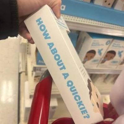 This thermometer's packaging is wildly inappropriate. Kind of disgusting to market a baby thermometer with "how about a quickie?" on the side of the box. Do better. Don't you know your target demographic?