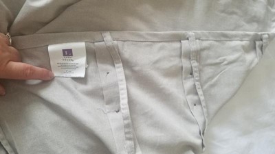 [This review was collected as part of a promotion.] I think the pale gray color is beautiful. Perfect for most decor styles. Light enough to not take focus away with enough color to make a statement. The linen is a thin weave, I felt it looked best with a liner underneath. The width is a bit narrow so with my windows and the look I want, I need 4 panels. The wood buttons are my favorite part of the design. It gives me a blend of farmhouse and simple elegance. It has very large loops in the back to fit over the rod. Once ironed, it is crisp with a nice drape. I would like the buttons more visable.