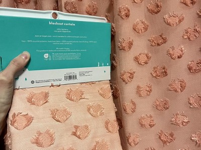 I was looking for a more light/muted pink blackout curtain for our nursery. I love the texture on this curtain as well, makes it more unique than just a regular curtain. Looks better than a curtain with grommets. We only needed one panel so didn't mind paying but could find cheaper on Amazon if you needed two panels. Love how it looks with the curtain rod (also from Target). And it actually blacks out the room.